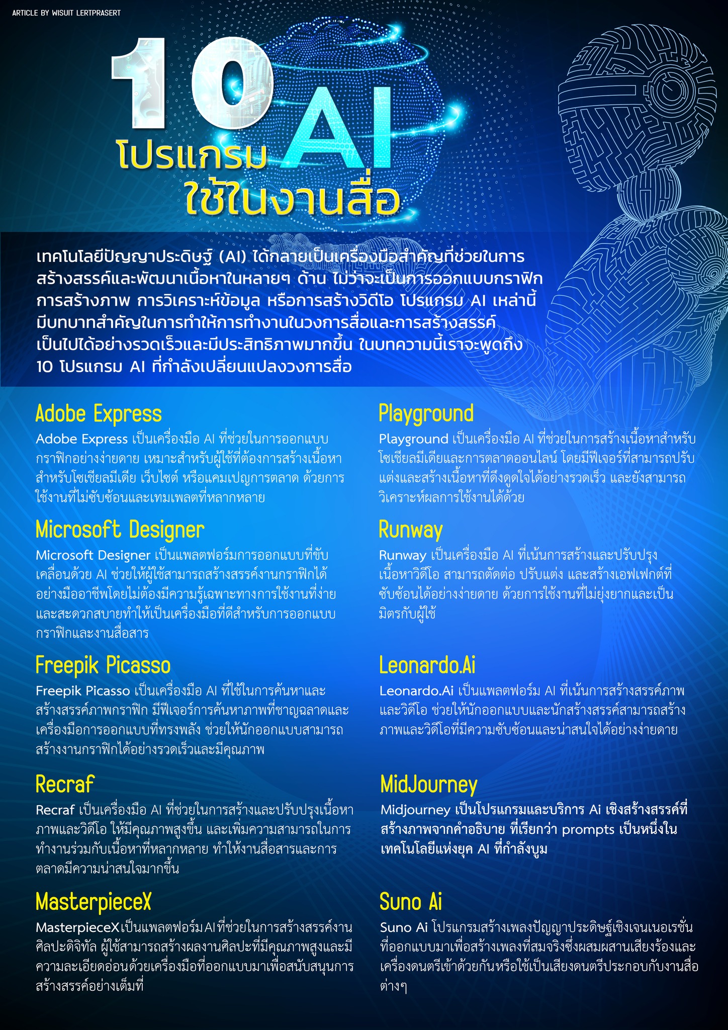 เรื่อง "10 โปรแกรม ใช้ในงานสื่อ AI"