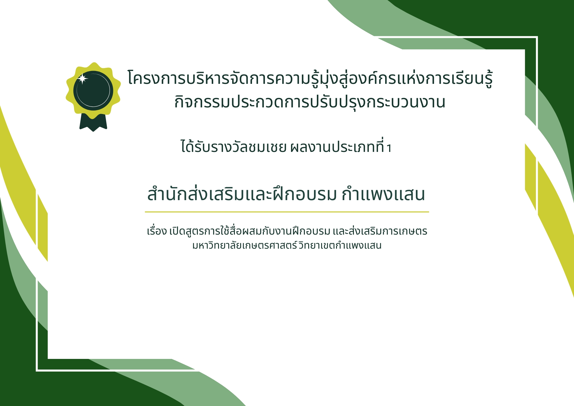 เรื่อง เปิดสูตรการใช้สื่อผสมกับงานฝึกอบรม และส่งเสริมการเกษตร