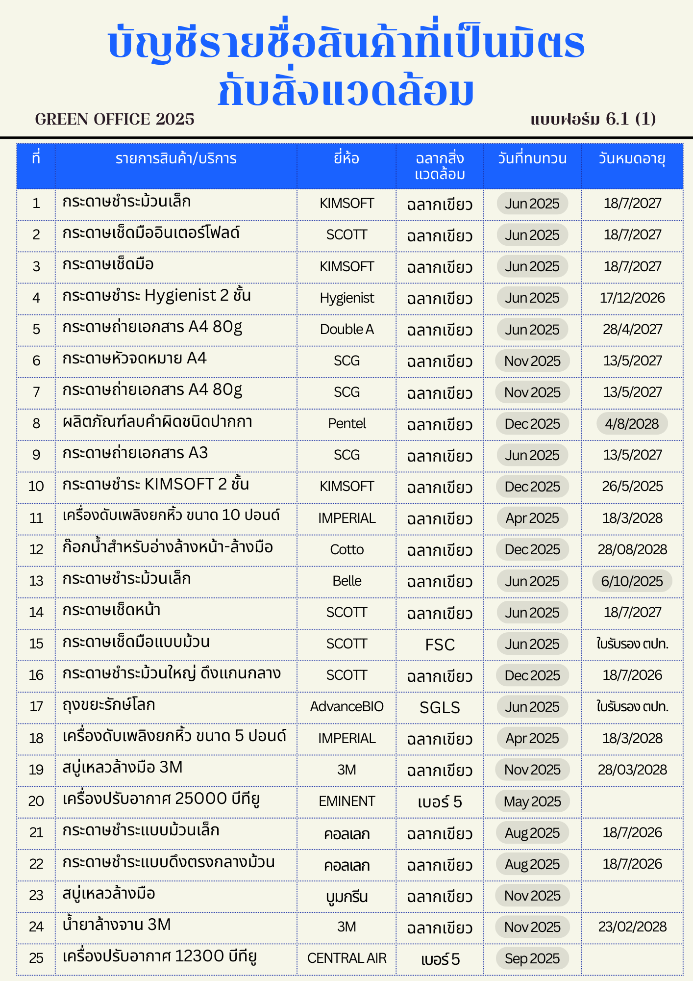 6.1.1 การจัดซื้อสินค้าที่เป็นมิตรกับสิ่งแวดล้อม