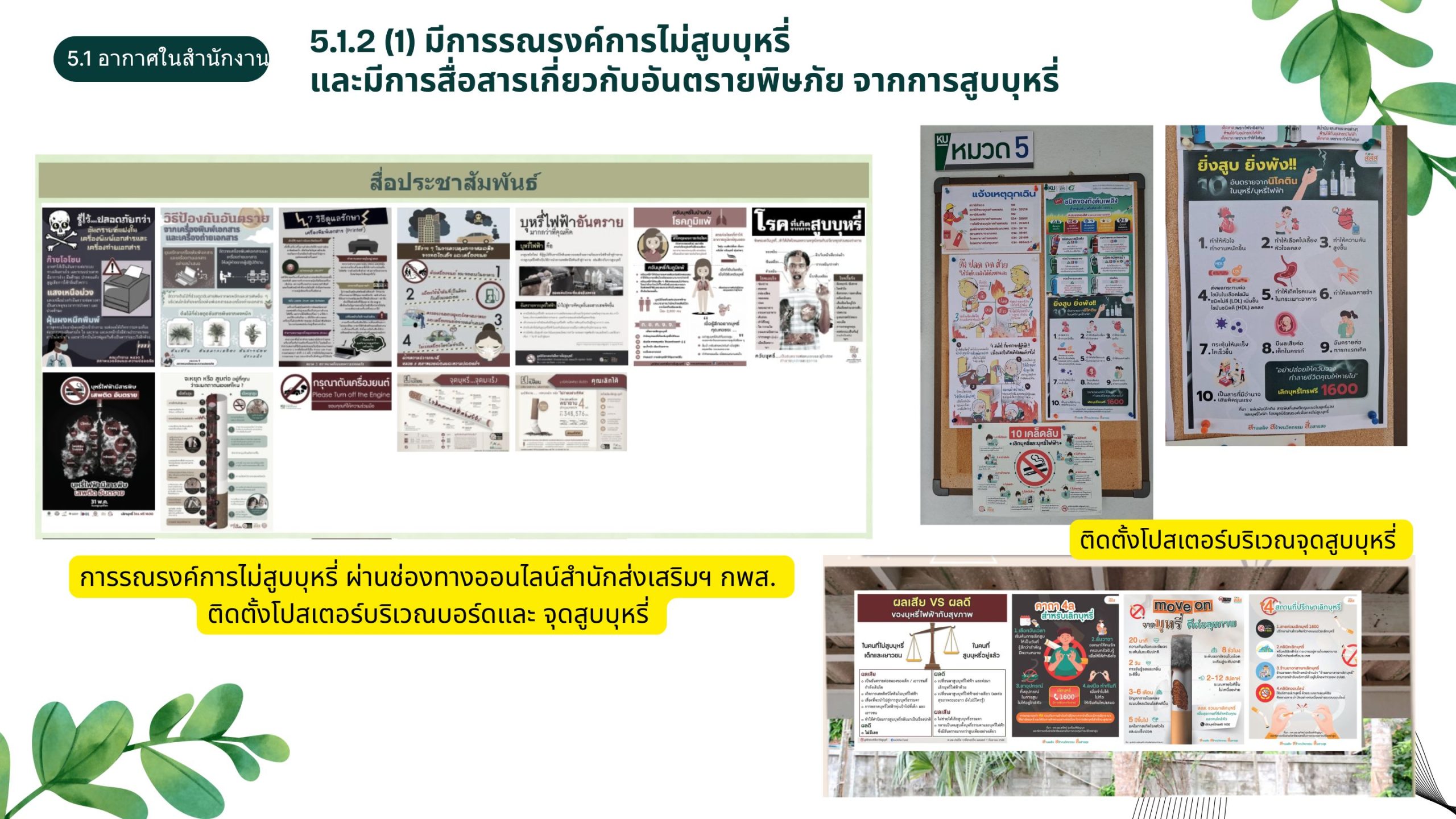 (1) มีการรณรงค์การไม่สูบบุหรี่ และมีการสื่อสารเกี่ยวกับอันตรายพิษภัยจากการสูบบุหรี่