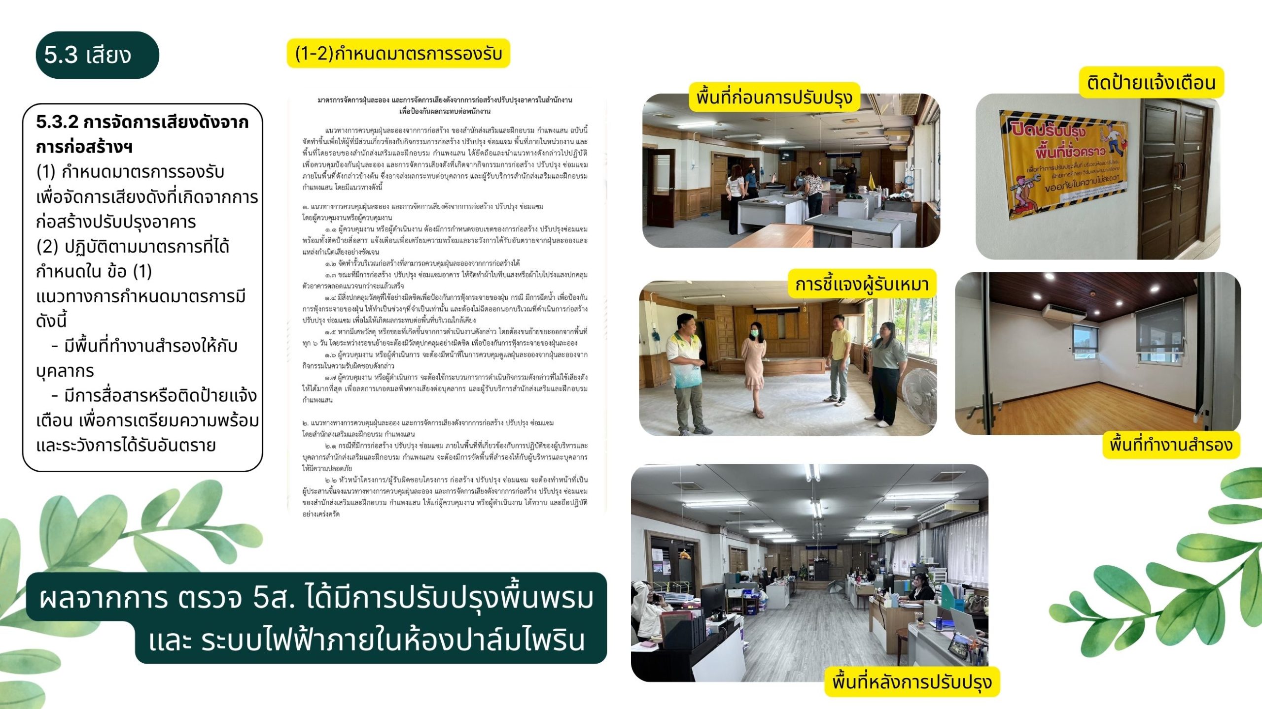 (1) กำหนดมาตรการรองรับเพื่อจัดการเสียงดังที่มาจากภายในสำนักงาน